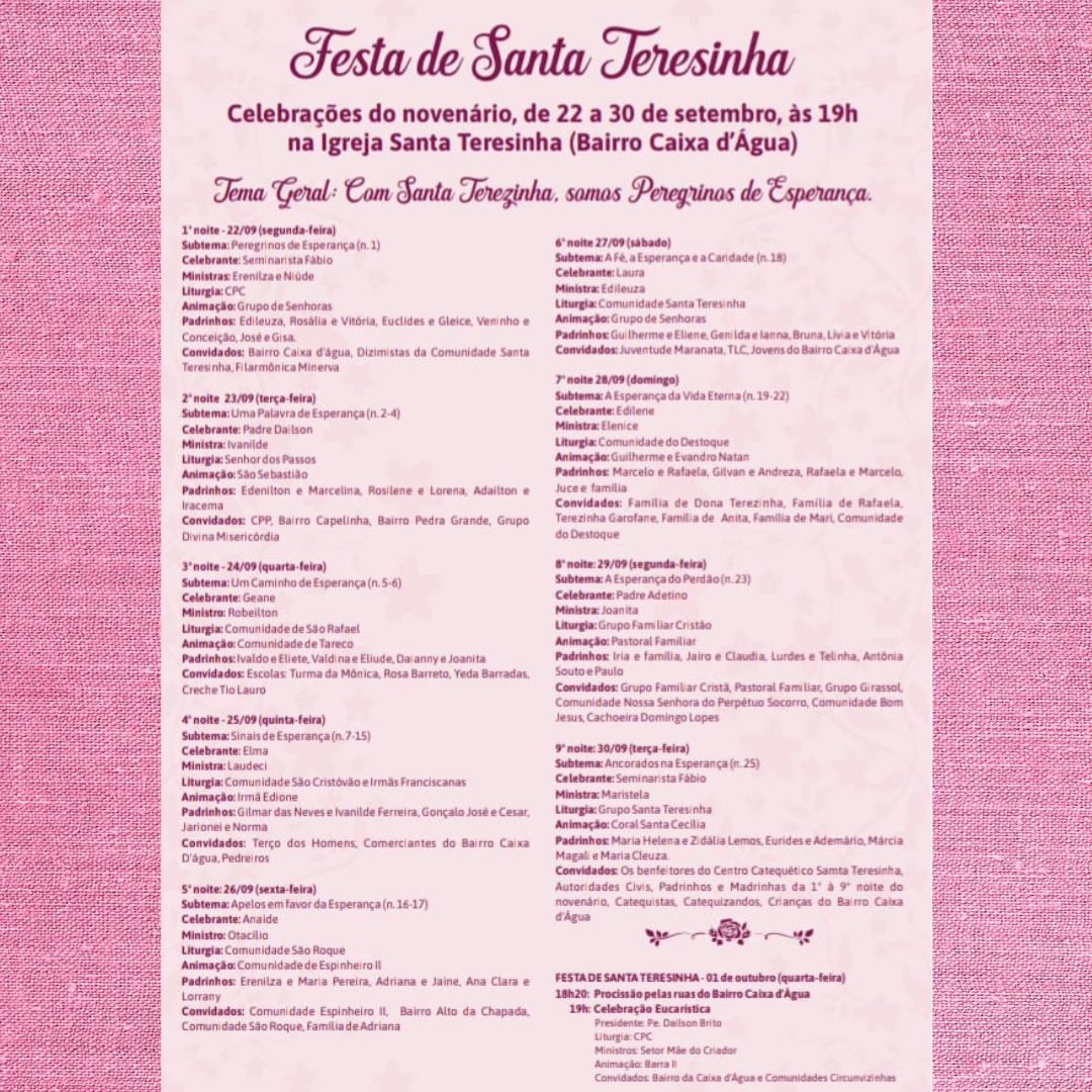 A comunidade da Caixa D’água de Morro do Chapéu – Ba, convida para a festa da Padroeira