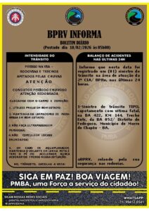 Ainda de acordo com a Polícia Rodoviária, o condutor ficou preso às ferragens e estava acompanhado por uma passageira, de iniciais A.F.C. – também com 38 anos, que teve ferimentos leves e foi conduzida pelo SAMU para o Hospital e Maternidade São Vicente de Paulo, em Morro do Chapéu – BA.