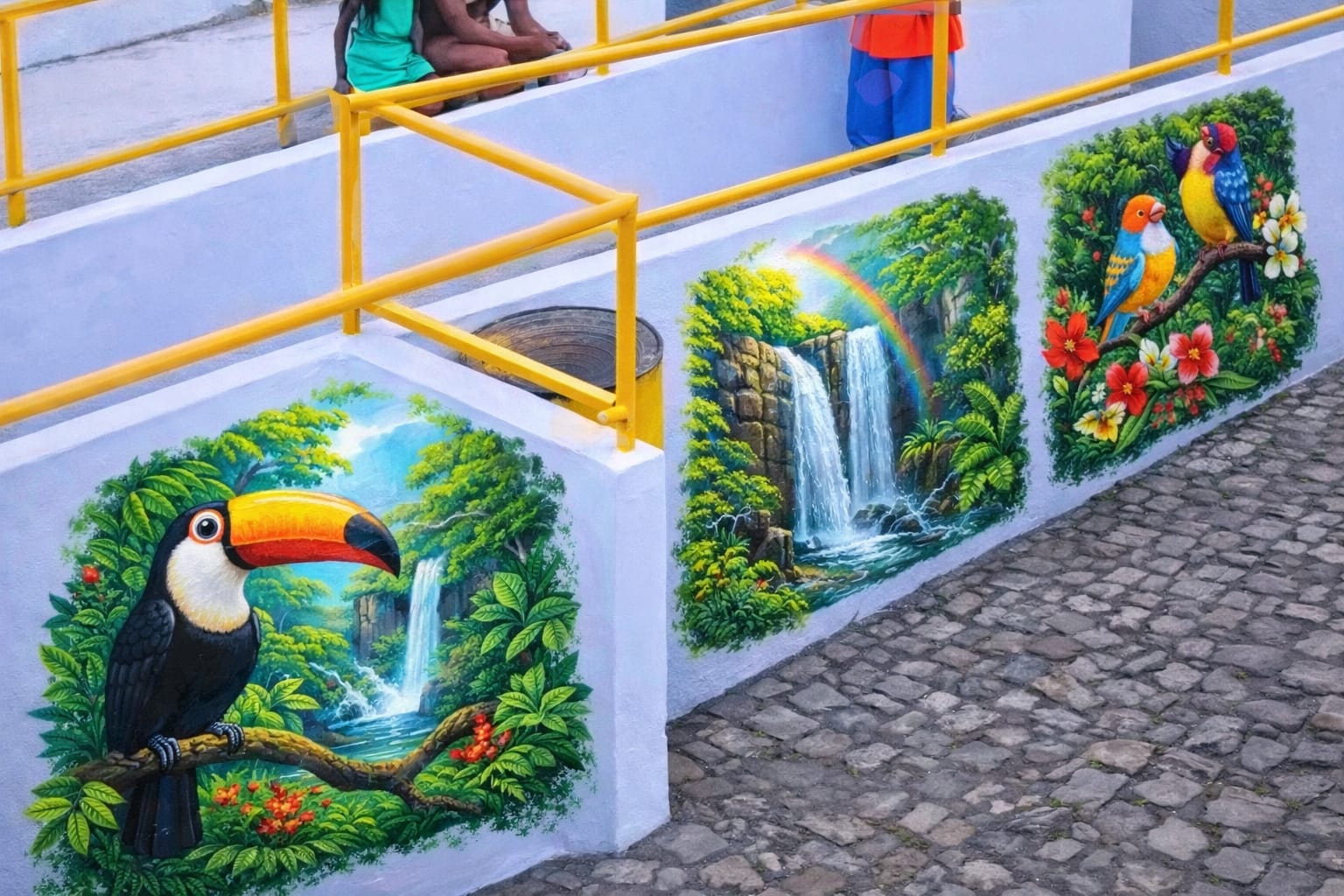 ‘Por que não chama os artistas de Morro do Chapéu e oferece estes espaços e o material para eles retratarem nossas belezas naturais e até fazer caricaturas de figuras do nosso futebol ou da nossa cultura: Jorge Homero, Júlio Magro, Júlio Pecador, Judith Arlego, Nego Fiinho, Madalena… aceitamos sugestões.