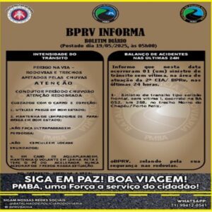 Foram tomadas as medidas cabíveis de isolamento e sinalização da via para a segurança da GU e demais usuários da mesma, com o devido acionamento da concessionária de energia para o isolamento e a retirada dos cabos rompidos da rodovia, gerando protocolo de atendimento de n° 20250519150897688.