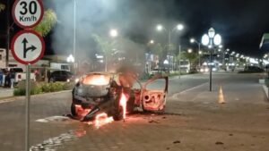 Veículo transportava cinco pessoas, incluindo uma criança; todos os ocupantes saíram ilesos Um carro modelo Citroën C3 pegou fogo por volta das 22:30h da última