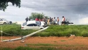 Um veículo modelo HB20, placa policial RDK3c57, colidiu contra um poste de iluminação na área urbana da BA – 052, em João Dourado – BA,
