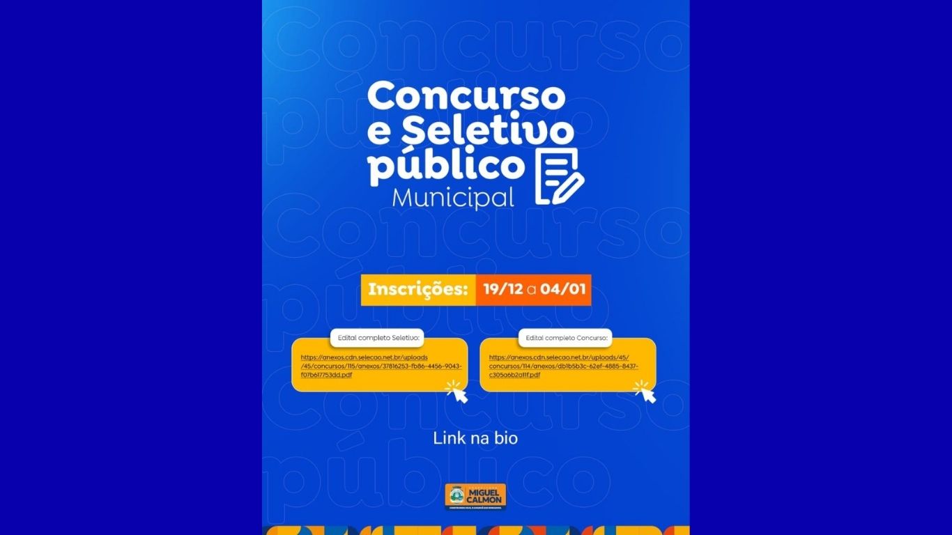 A Prefeitura de Miguel Calmon, no Piemonte da Diamantina, publicou o Edital de Concurso Público nº 001/2025, que trata da abertura de concurso público e
