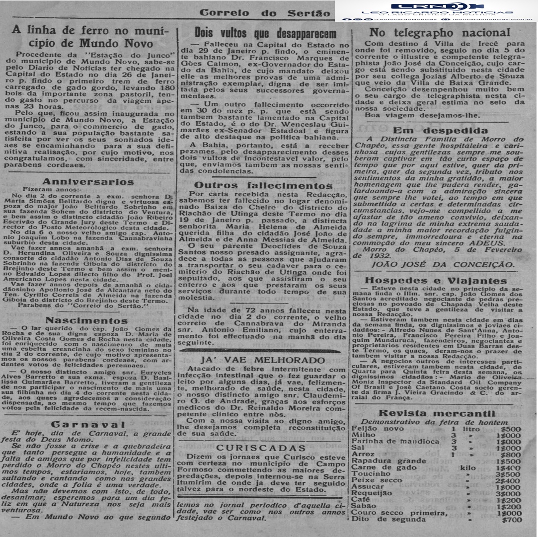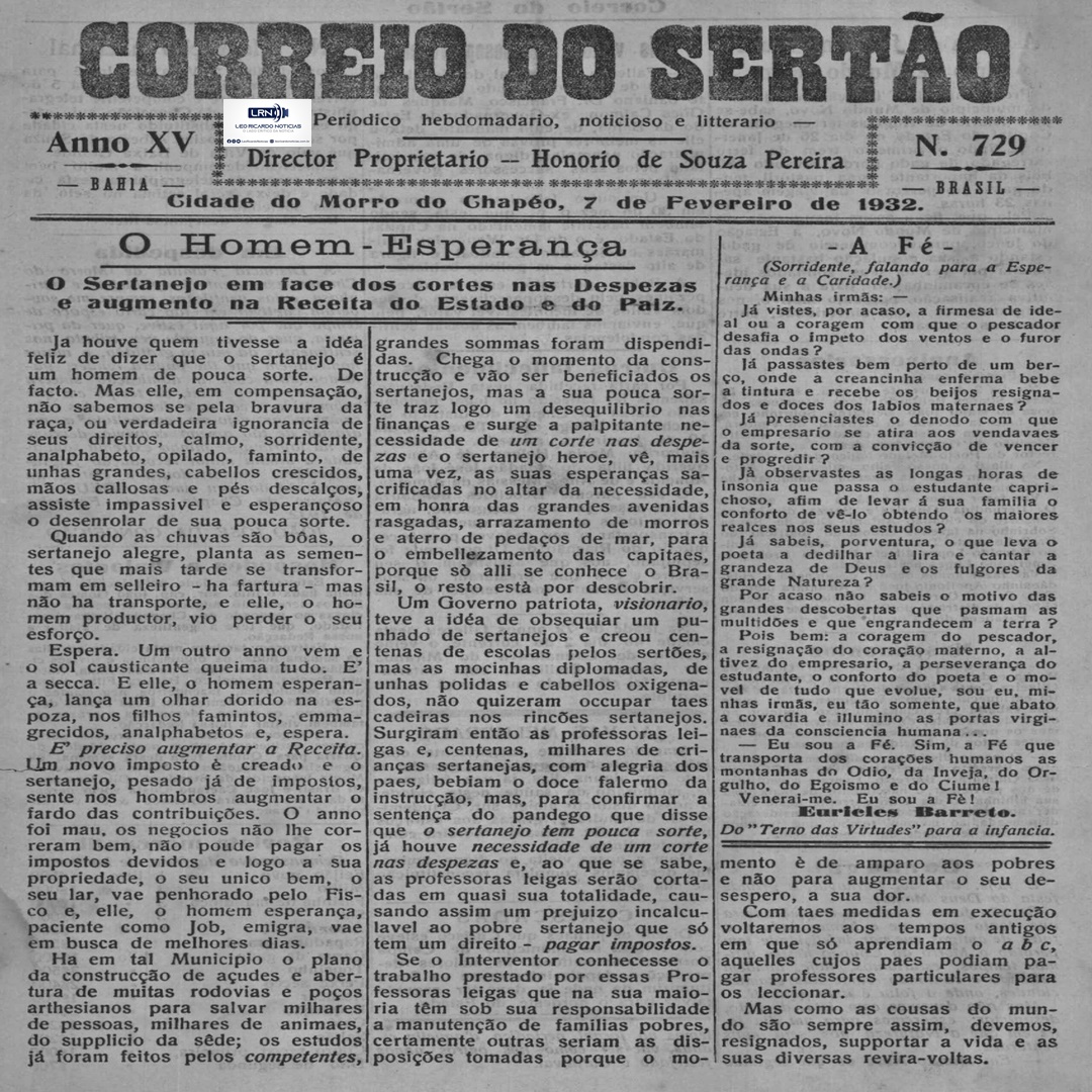Nosso leitores estão habituados a ter, todo sábado ou domingo, edições completas do noticiosos mais antigo do Interior Baiano, em circulação ininterrupta, com pelo menos cem anos de edição.