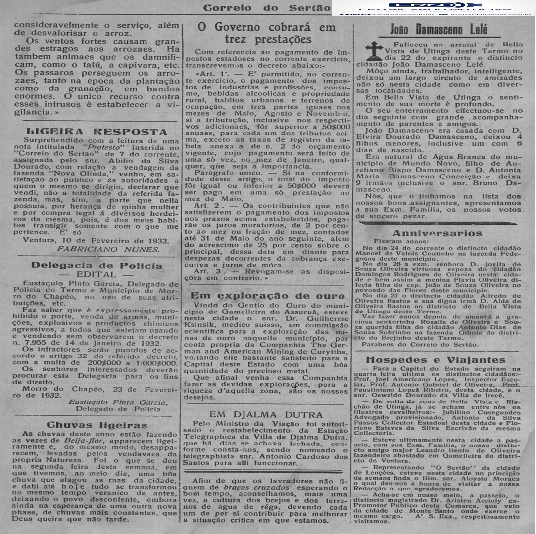 Nosso leitores estão habituados a ter, todo sábado ou domingo, edições completas do noticiosos mais antigo do Interior Baiano, em circulação ininterrupta, com pelo menos cem anos de edição.
