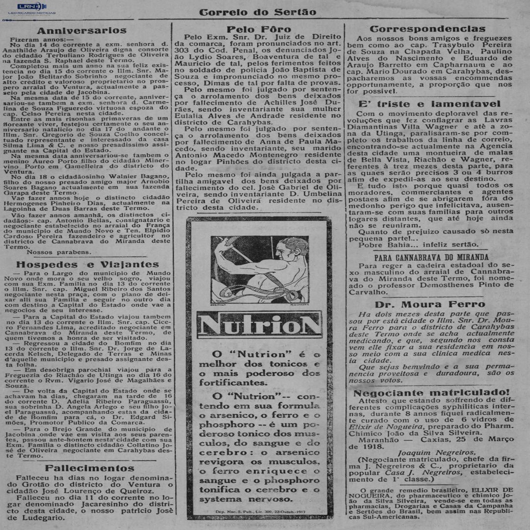 Nosso leitores estão habituados a ter, todo sábado ou domingo, edições completas do noticiosos mais antigo do Interior Baiano, em circulação ininterrupta, com pelo menos cem anos de edição.