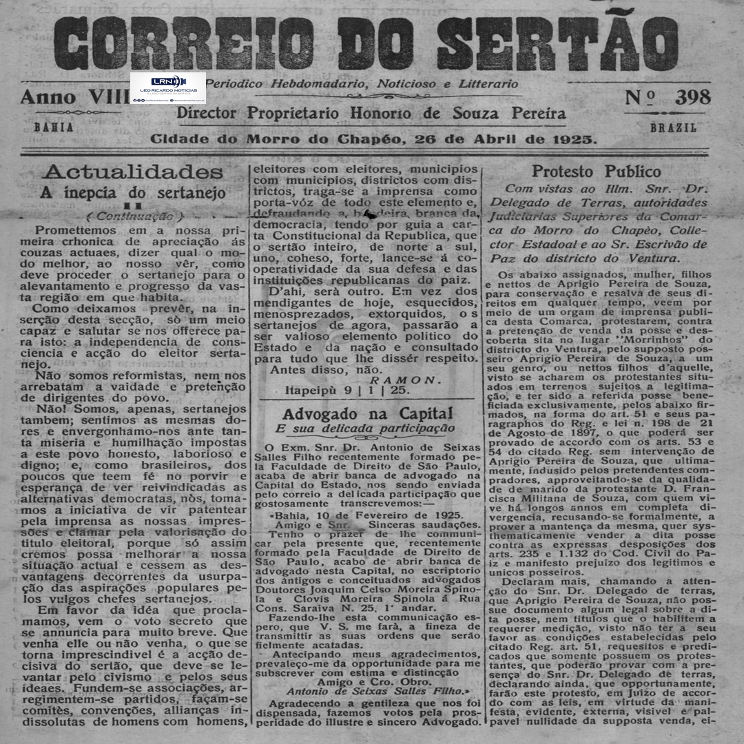 E mais: ‘A Inépcia do sertanejo’, ‘Protesto Público’, de 26 04 1925 e muito mais