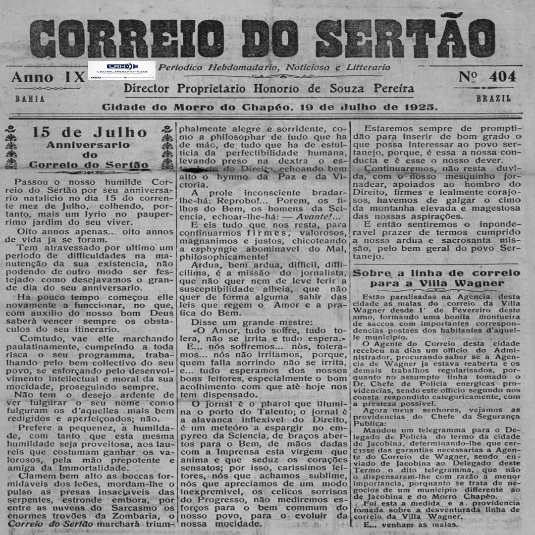 Nosso leitores estão habituados a ter, todo sábado ou domingo, edições completas do noticiosos mais antigo do Interior Baiano, em circulação ininterrupta, com pelo menos cem anos de edição.