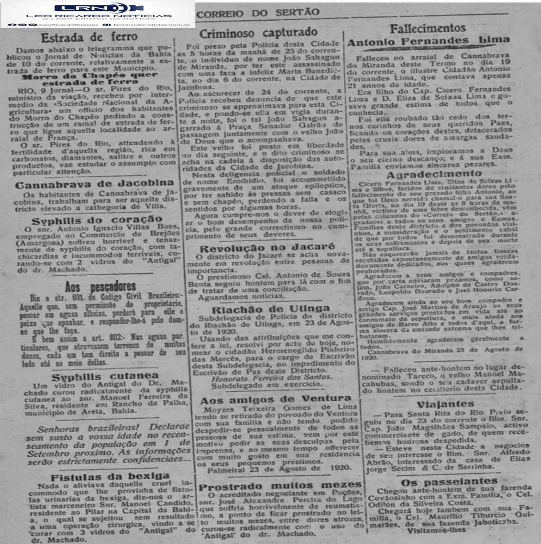Veremos hoje: Falsos Padres, Criminoso capturado e Coronel Benta e a sua intervenção pacificadora (Setembro e agosto de 1920)