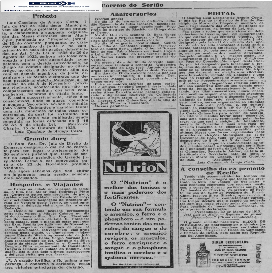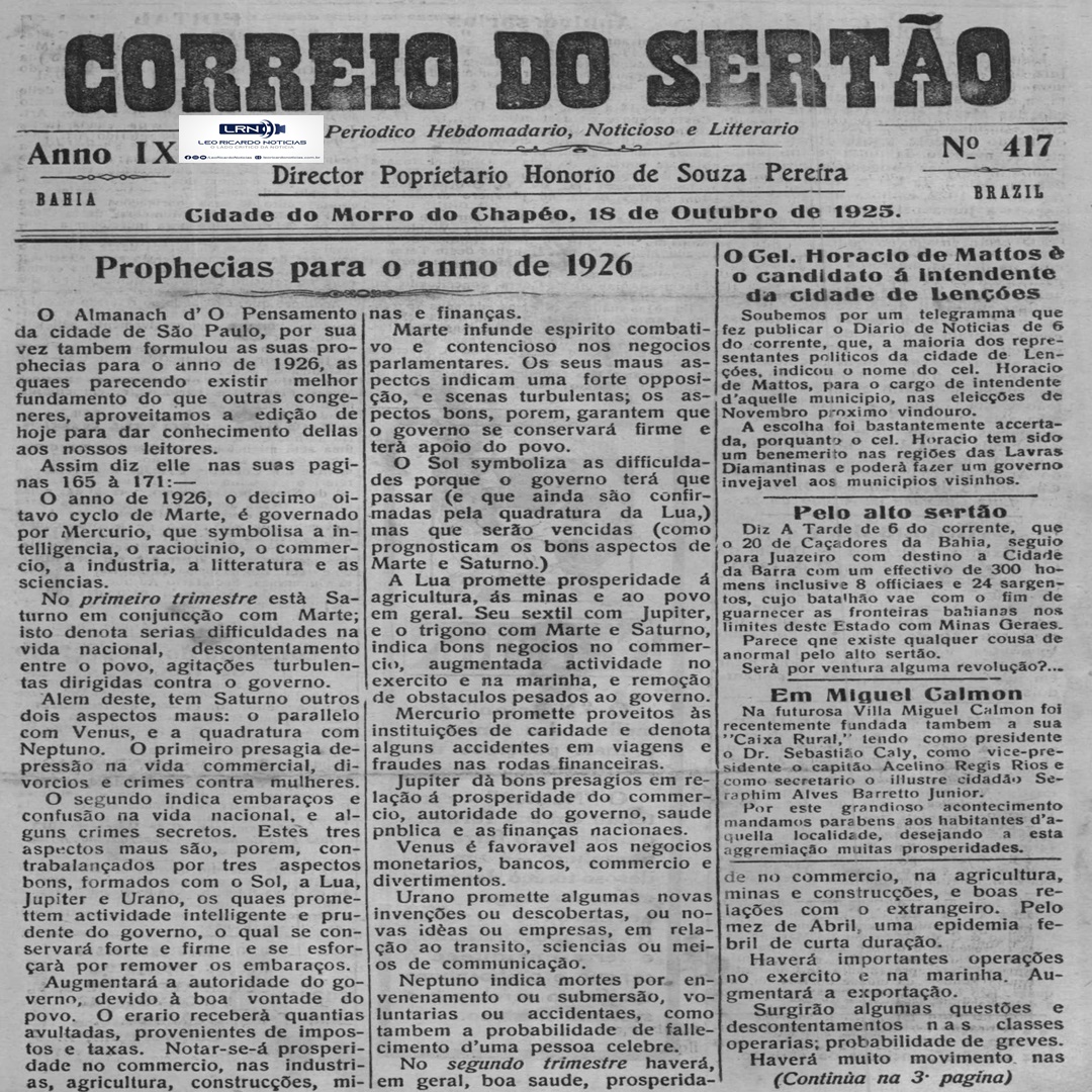 Nosso leitores estão habituados a ter, todo sábado ou domingo, edições completas do noticiosos mais antigo do Interior Baiano, em circulação ininterrupta, com pelo menos cem anos de edição.