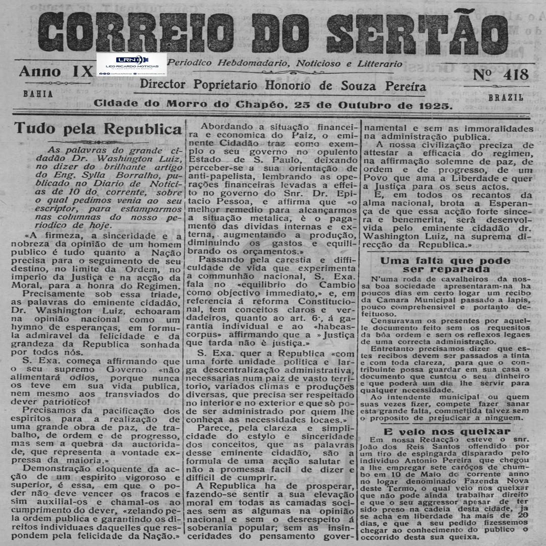 Nosso leitores estão habituados a ter, todo sábado ou domingo, edições completas do noticiosos mais antigo do Interior Baiano, em circulação ininterrupta, com pelo menos cem anos de edição.