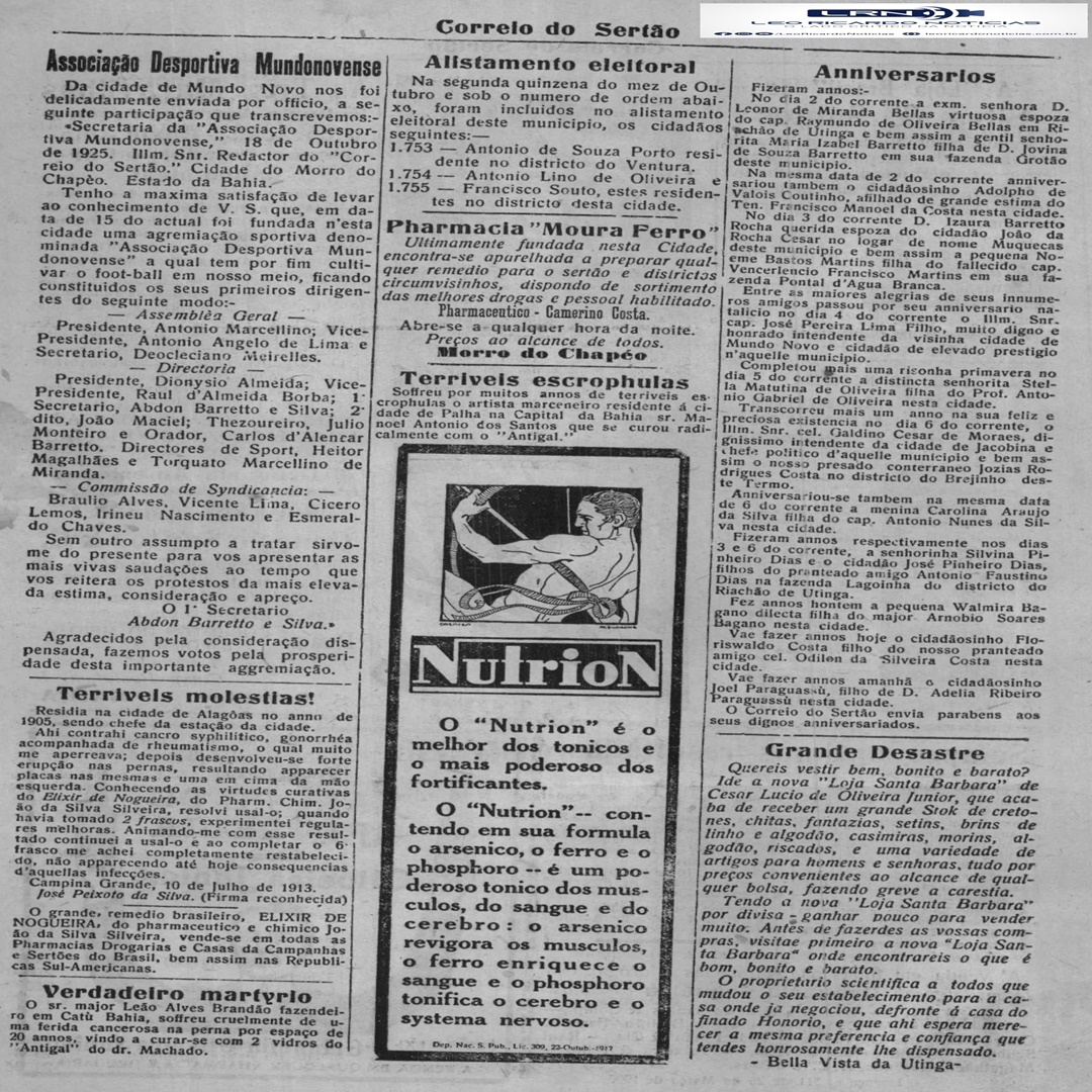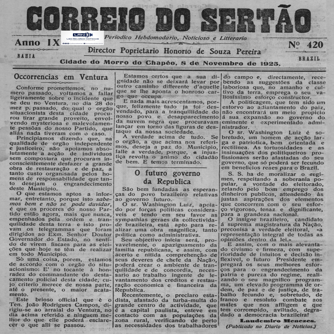 Nosso leitores estão habituados a ter, todo sábado ou domingo, edições completas do noticiosos mais antigo do Interior Baiano, em circulação ininterrupta, com pelo menos cem anos de edição.