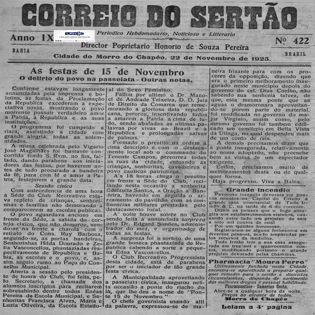 Correio do Sertão… REVIVENDO NOSSA HISTÓRIA – XXXVI e edição completa de 22 11 1925