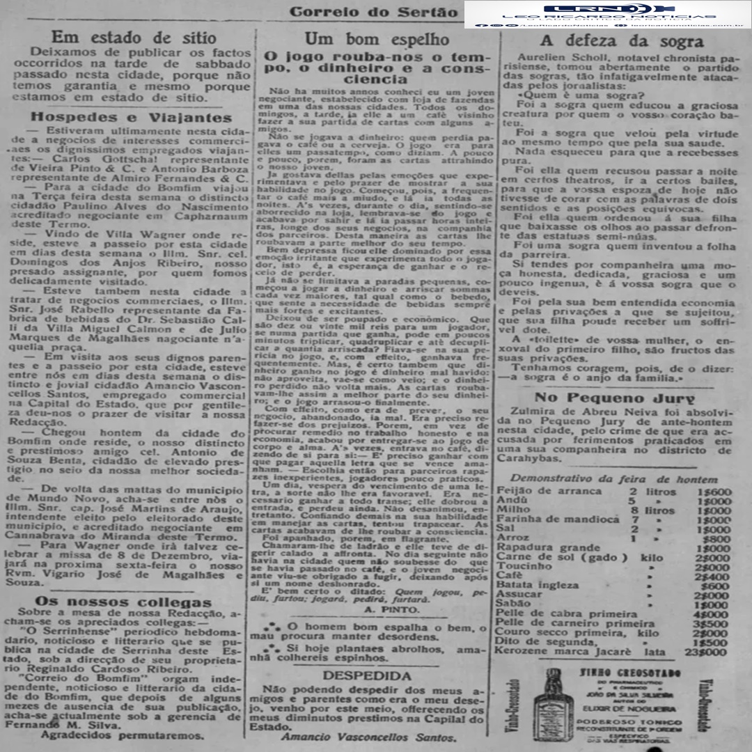 Nosso leitores estão habituados a ter, todo sábado ou domingo, edições completas do noticiosos mais antigo do Interior Baiano, em circulação ininterrupta, com pelo menos cem anos de edição.