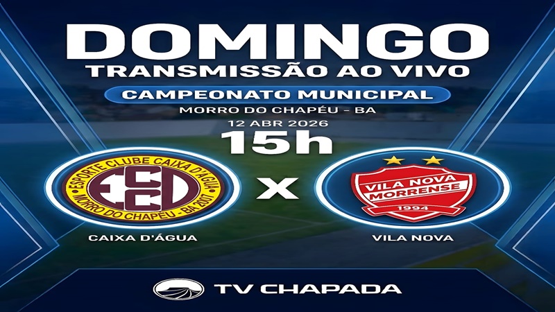 Acompanhe neste domingo, 12 de abril, a transmissão ao vivo do confronto entre Caixa D’água x Vila Nova. pelo Campeonato Municipal de Morro do Chapéu – BA.