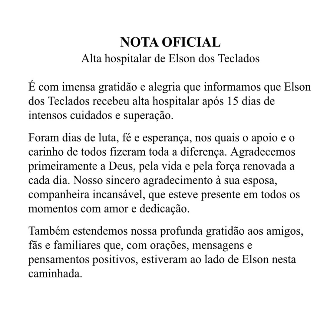 No começo deste mês recebemos uma notícia que preocupou todos os familiares, amigos e admiradores do cantor @elsondostecladosoficial1, onde o mesmo foi internado em um hospital em Feira de Santana com um quadro renal precisando inclusive de suporte na UTI onde ficou internado por um período.