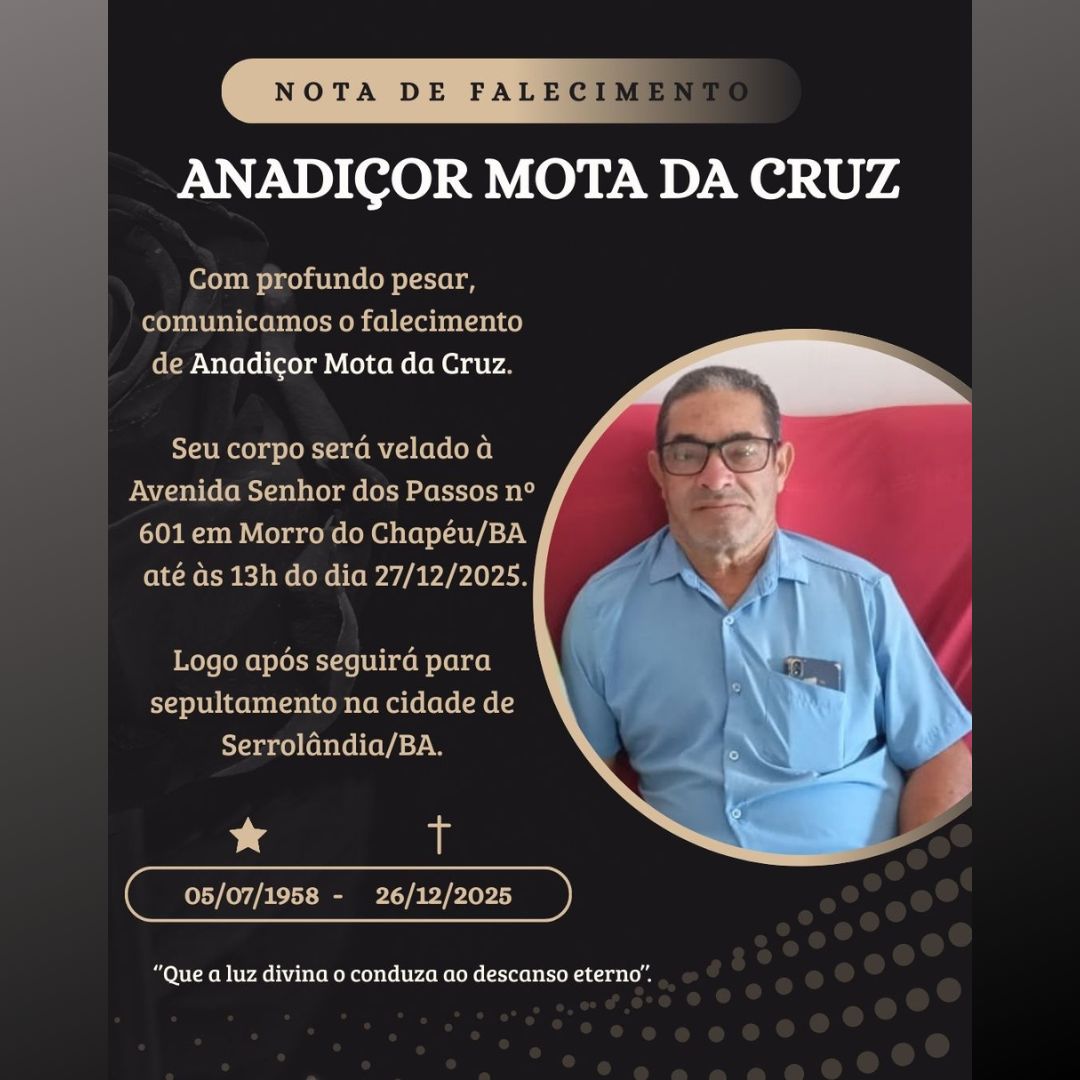 O velório acontece na residência da família, à Avenida Senhor dos Passos, em Morro do Chapéu e sairá para Serrolândia, onde será sepultado, nesta manhã de sábado.