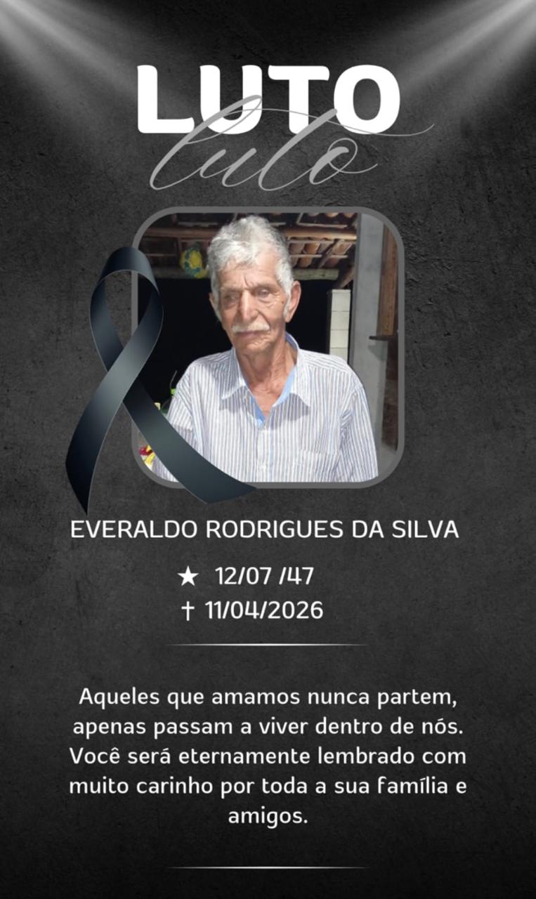 Neste sábado (11), veio a óbito o amigo Everaldo Rodrigues da Silva, popularmente conhecido como Vereda, aos 78 anos.