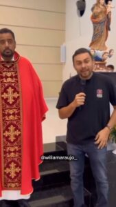 O momento foi registrado pelo paroquiano @wiliamaraújo, na Santa Missa matinal de domingo, dia de São Pedro e São Paulo, quando o cantor de forró e vaquejada, além de adentrar o Santuário de Nossa Senhora do Livramento, padroeira local.