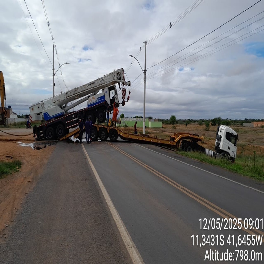 João Dourado – BA: Caminhão prancha com guindaste se envolve em incidente na BA-052; PRE esteve no local