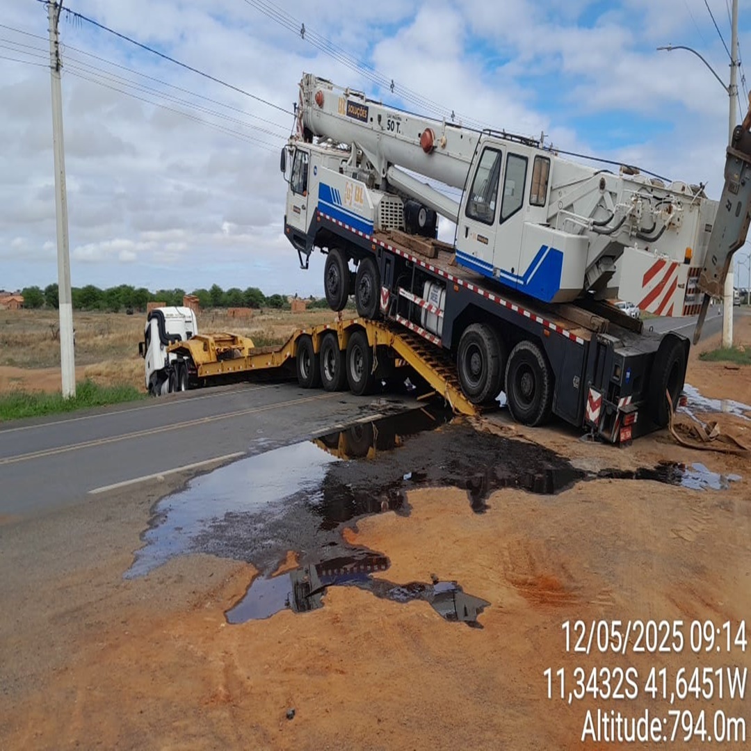 João Dourado – BA: Caminhão prancha com guindaste se envolve em incidente na BA-052; PRE esteve no local