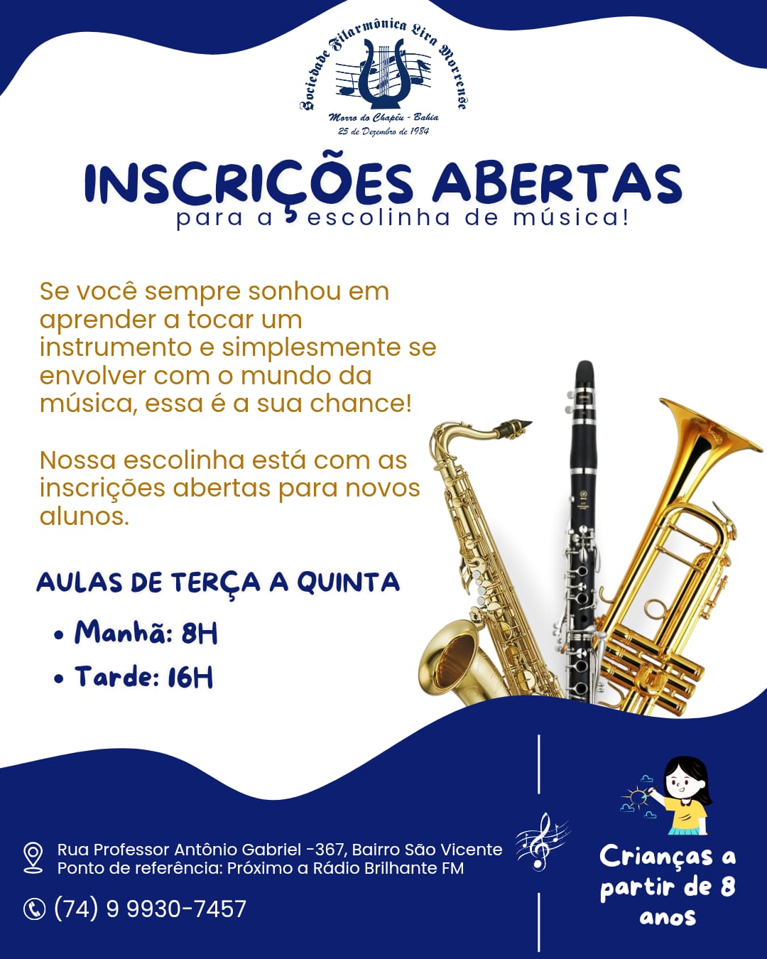 As inscrições para a Escolinha de Música Lira Morrense já começaram! 🥳