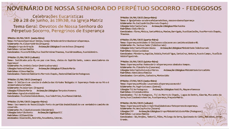É com grande alegria que convidamos a todos para o novenário e Festa de nossa querida Padroeira, Nossa Senhora do Perpétuo Socorro.