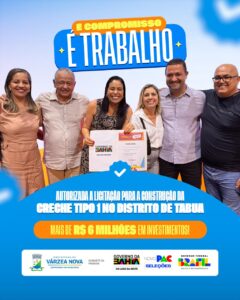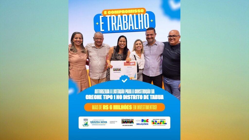 A Prefeitura de Várzea Nova conquistou a autorização para a licitação de uma Creche Tipo 1 no distrito de Tabua, em uma iniciativa que promete ampliar significativamente a oferta de educação infantil no município. A obra será viabilizada por meio de convênio firmado entre a gestão municipal, o Governo do Estado e o Governo Federal, através do PAC Seleções, com investimento superior a R$ 6 milhões.