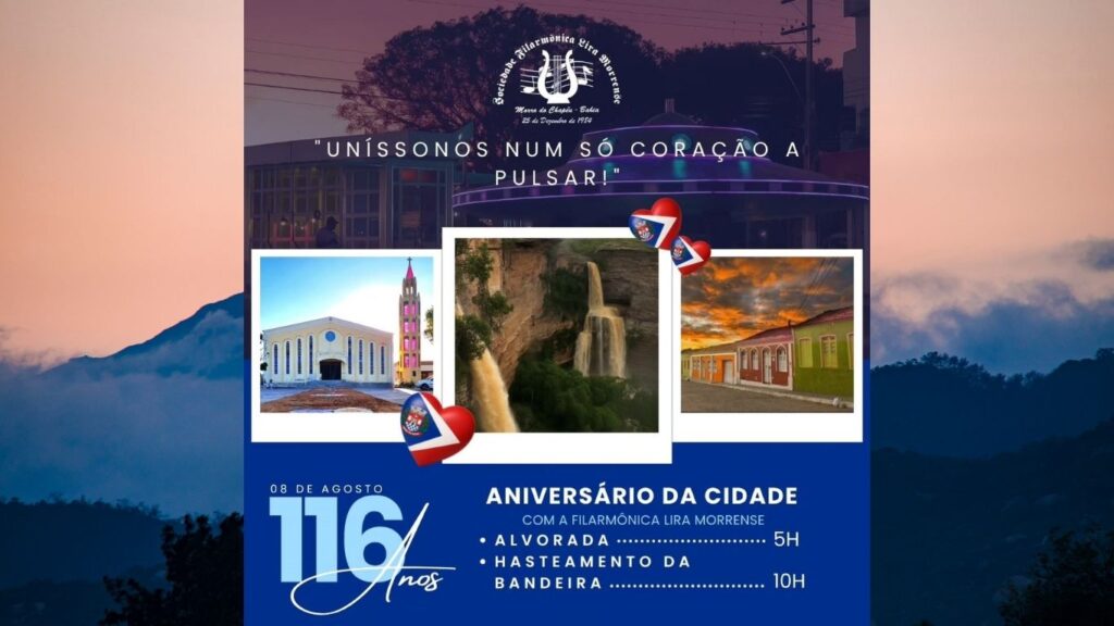 No dia 08 de agosto, em comemoração ao aniversário da nossa querida Morro do Chapéu, realizaremos uma alvorada festiva pelas ruas da cidade, marcando o início das celebrações. E às 10h, estaremos presentes na solenidade de hasteamento da bandeira, contribuindo para este momento cívico e especial. É com grande honra que participamos desta data tão […]