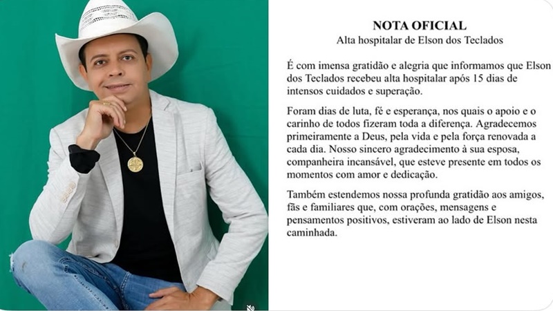Pra começar o sábado com boa notícia!! 🤍 No começo deste mês recebemos uma notícia que preocupou todos os familiares, amigos e admiradores do cantor @elsondostecladosoficial1, onde o mesmo foi internado em um hospital em Feira de Santana com um quadro renal precisando inclusive de suporte na UTI onde ficou internado por um período. Neste período […]