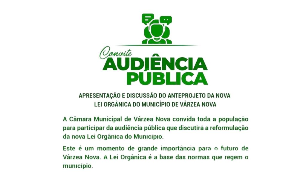 A Câmara Municipal de Várzea Nova convida você para participar da audiência pública que discutirá o anteprojeto da nova Lei Orgânica do Município. Este é um momento fundamental para o futuro da nossa cidade. A sua participação é essencial para construirmos, juntos, uma legislação mais justa e atualizada. 🗓️ Hoje, quinta-feira – 10 de […]
