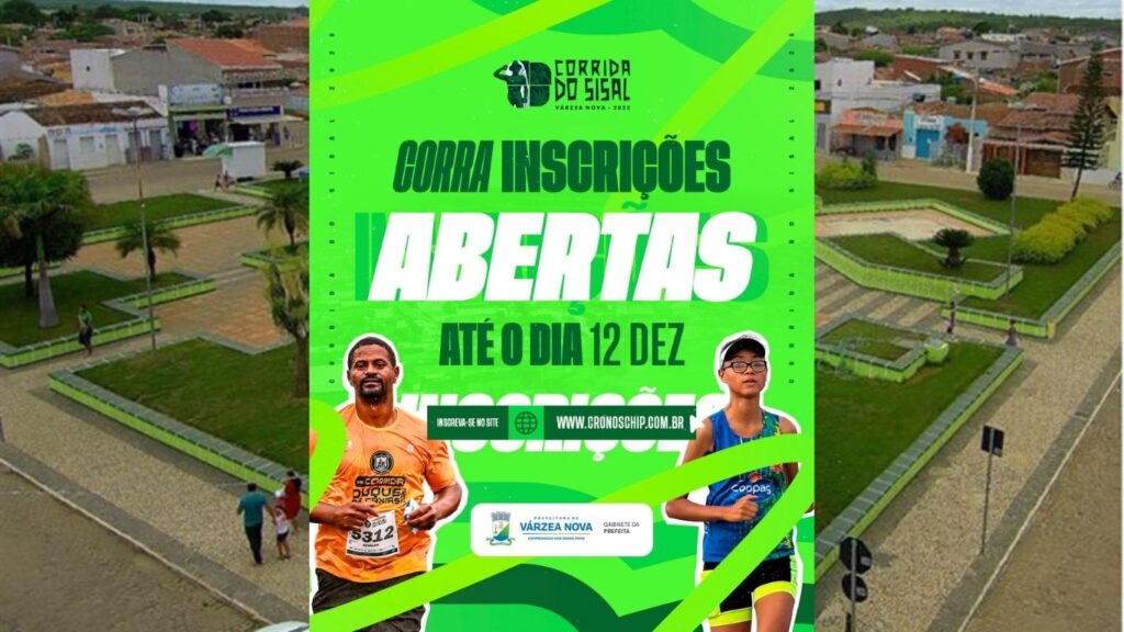 A Prefeitura de Várzea Nova abriu hoje, 10 de novembro, as inscrições para a Corrida do Sisal, que vão até o dia 12 de dezembro. O percurso varia entre 3 e 5 km, e a disputa acontecerá no dia 21 de dezembro. O valor total da premiação chegará a R$ 22.000, que será dividido entre os melhores colocados de cada modalidade. A expectativa é receber mais de 400 atletas do município e de toda a região, em uma disputa que une espírito esportivo e inclusão social.
