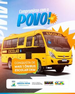 A Prefeitura de Várzea Nova anunciou a chegada de mais um ônibus escolar zero quilômetro, adquirido por meio de emenda parlamentar e em parceria com o Governo do Estado da Bahia. O novo veículo faz parte do Programa Caminho da Escola, iniciativa do Ministério da Educação voltada à renovação e ampliação da frota destinada ao transporte de alunos da rede pública.