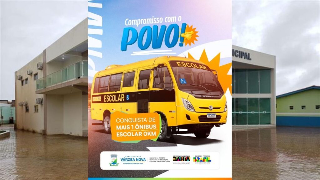 A Prefeitura de Várzea Nova anunciou a chegada de mais um ônibus escolar zero quilômetro, adquirido por meio de emenda parlamentar e em parceria com o Governo do Estado da Bahia. O novo veículo faz parte do Programa Caminho da Escola, iniciativa do Ministério da Educação voltada à renovação e ampliação da frota destinada ao transporte de alunos da rede pública.