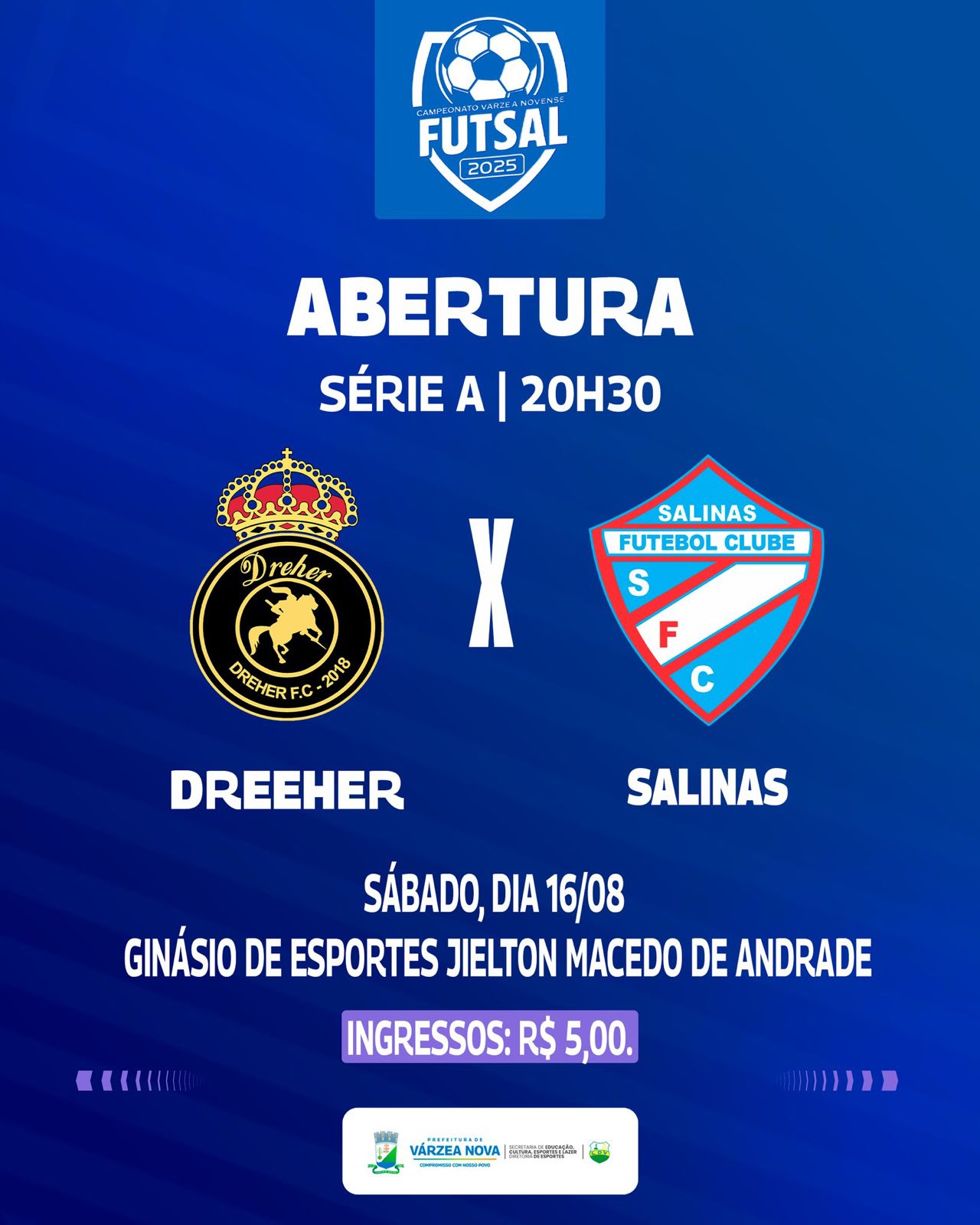 Neste sábado, dia 16 de agosto, a cidade de Várzea Nova será palco da grande abertura do Campeonato Várzea-novense de Futsal, uma das competições esportivas mais esperadas do ano. A cerimônia e os jogos acontecerão no Ginásio de Esportes Jielton Macedo de Andrade, com início às 18h30, e prometem reunir atletas, torcedores e autoridades locais em uma verdadeira celebração do esporte.