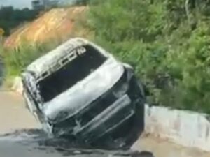 Ainda segundo o relato do internauta, o condutor teria perdido o controle da direção, fazendo com que o veículo subisse na lateral da ponte. O impacto pode ter provocado o incêndio que destruiu o automóvel.